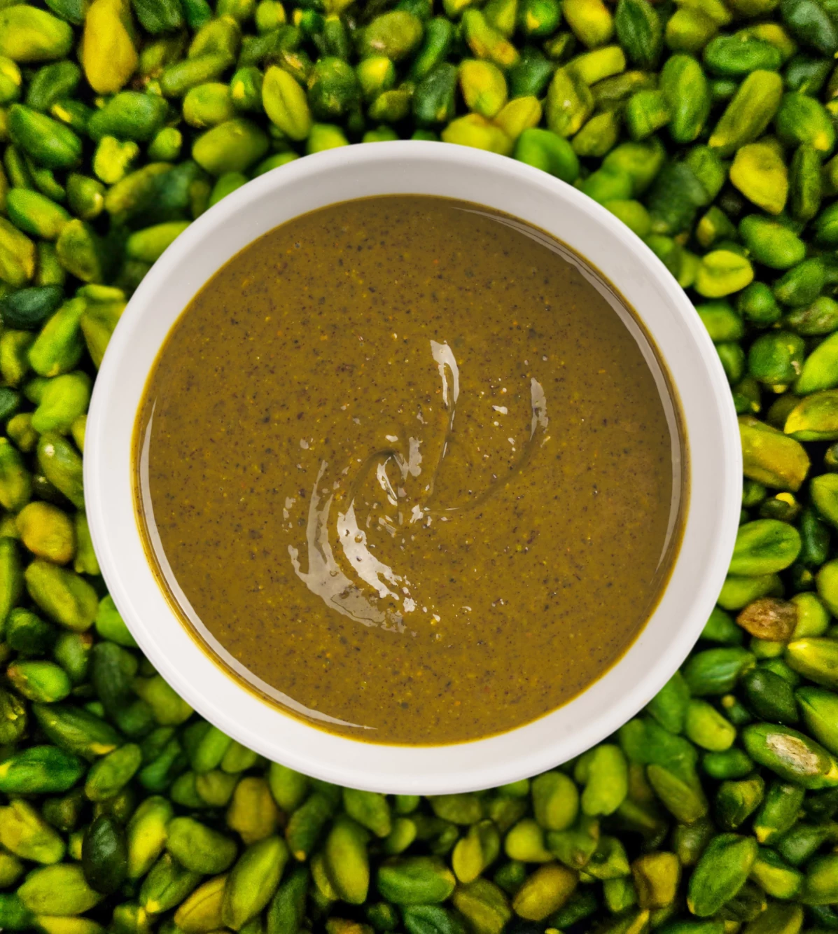 Leírás: pürésített , de nem teljesen homogén, 100%-os tisztaságú, natúr pisztácia. Semmilyen egyéb adalékanyagot nem tartalmaz.